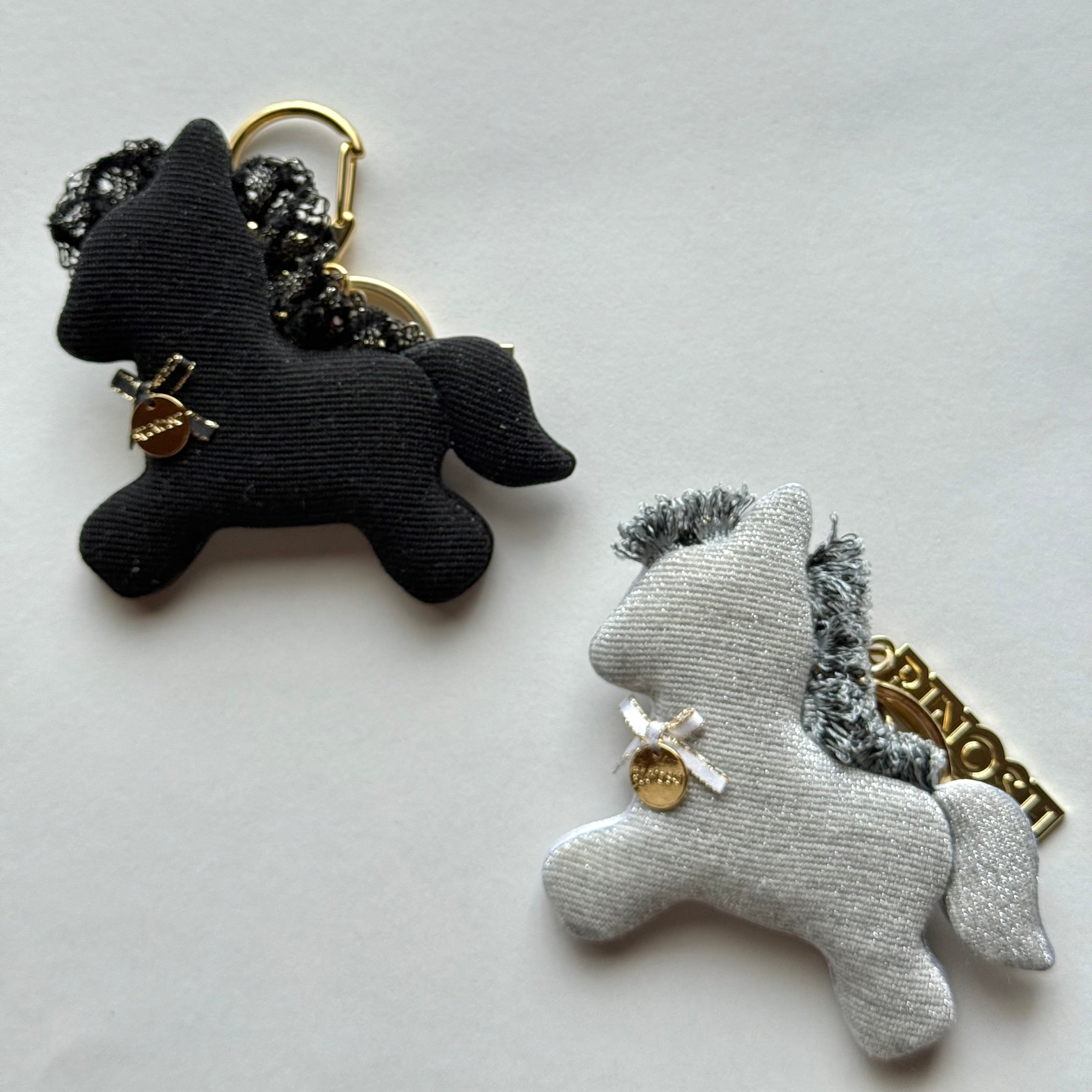 走る姿と立て髪が可愛い、ポニーチャームです。表も裏も同じ生地でふっくら可愛く仕上げました。